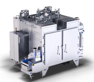 The most commonly used combination with the Contact Cooker is a spiral oven, such as JBT’s recently-launched Stein TwinDrum PRoYIELD Spiral Oven (pictured above).Featuring patented double-impact airflow technology, the PRoYIELD takes the original TwinDrum two-zone cooking design and makes it even better by dramatically improving temperature consistency, allowing customers to improve product quality, boost yield and save energy.